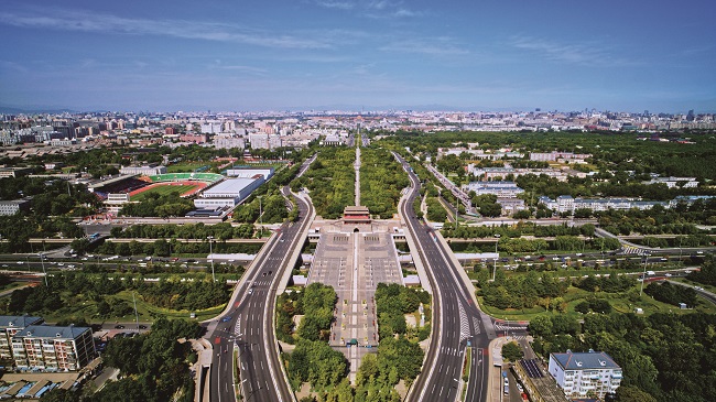>> 北京中轴线俯瞰图。